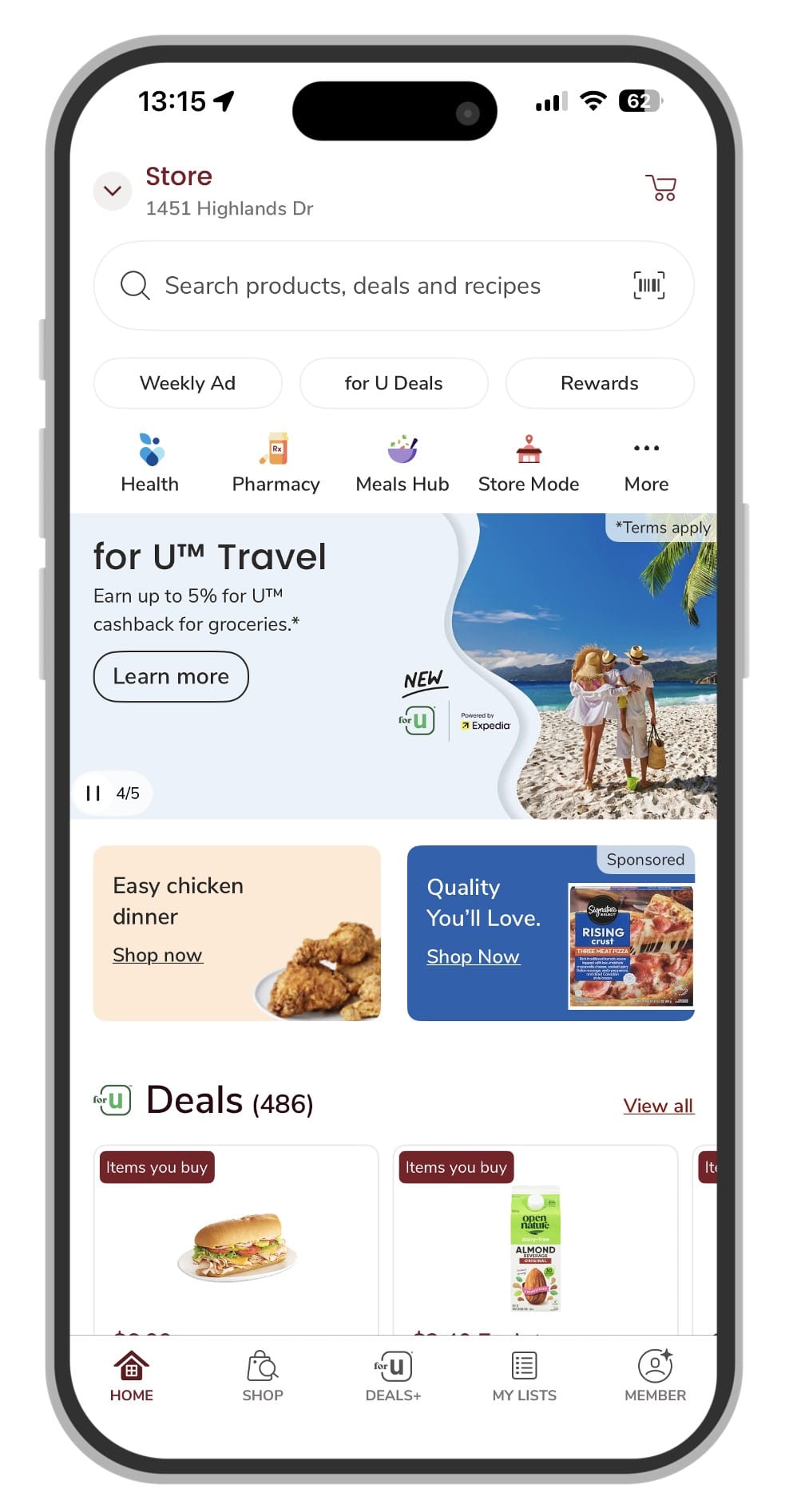 In addition to cashback from U Travel bookings, customers who sign up for Albertsons Cos.’ free for U loyalty program will receive $5 off their next purchase of $25 or more of qualifying items, and top members save 35% weekly with personalized deals, digital coupons, a birthday treat and a free monthly item.