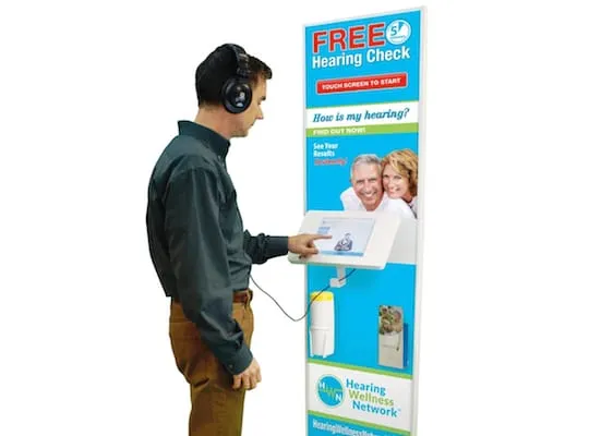 To use the kiosks, customers put on headphones and follow instructions on an interactive screen. A video guide walks them through a series of hearing tones for each ear, which takes a few minutes. When the test is done, customers receive a summary of their hearing health, including whether there are any signs of hearing loss. They then can click to get a free consultation with a local hearing professional or have their free hearing report emailed to them.