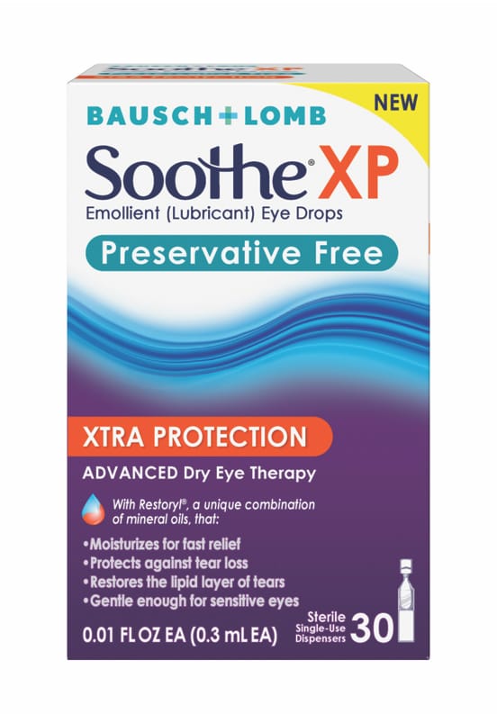 BRIDGEWATER, N.J. – Bausch + Lomb has added Soothe Xtra Protection (XP) Preservative Free lubricant eye drops, expanding its portfolio of eye health products to meet the growing demand for dry eye symptom relief without the use of preservatives. One of the most common eye conditions in the U.S., dry eye affects more than 140 million Americans, many of whom report a sensitivity to preservatives in eye drops.