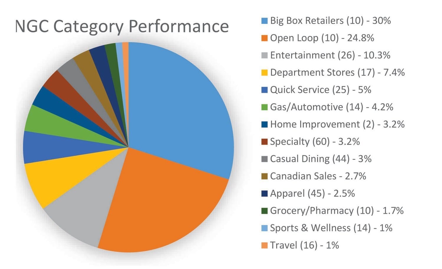 Biggest category changes: In addition to the significant change in Big Box Retailers, Open Loop, e.g. Visa and American Express Prepaid Cards, saw an increase of three percent. Entertainment, on the other hand, decreased seven percent.