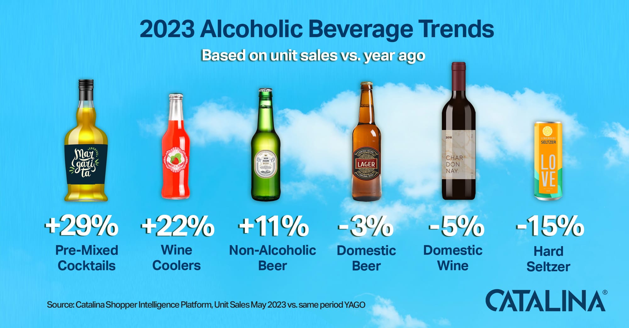 “We expect pre-mixed cocktails to be well-stocked in picnic coolers across the country this Summer, at the expense of hard seltzer and domestic beer and wine,” said Sean Murphy, Chief Data & Analytics Officer at Catalina. “Hosts can now conveniently offer a wider variety of flavors and styles–from a classic margarita to fruit-infused vodka spritzes – that are typically more affordable than buying individual ingredients. They are also lower in calories and sugar than many other alcoholic beverages.”