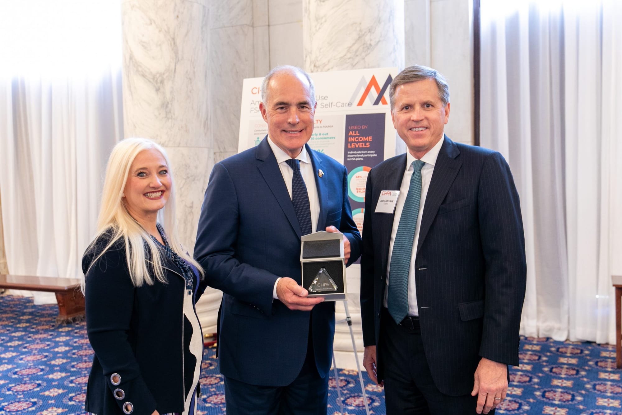 CHPA Board Chair Lisa Paley (Haleon, President, North America), U.S. Senator Bob Casey, and CHPA President & CEO Scott Melville