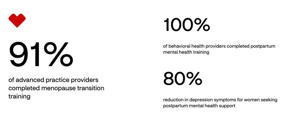While 1.3 million women enter menopause each year, about 80% of medical residents say they are uncomfortable discussing or providing menopause care. And one in five women experience maternal mental health conditions, which remain underdiagnosed and undertreated during and following pregnancy.