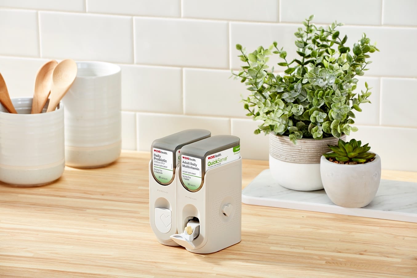 WOONSOCKET, R.I. — CVS Pharmacy announced the launch of its CVS Health QuickServe Vitamin Dispensing System, an easy-to-assemble vitamin dispenser that holds a 30-day supply of select CVS Health vitamins and supplements. Its sleek countertop design promotes “vitaminimalism” — the simplification of vitamin and supplement routines, eliminating the clutter of pill bottles and keeping vitamins and supplements front and center which may help increase adherence and enhance self-care regimens.