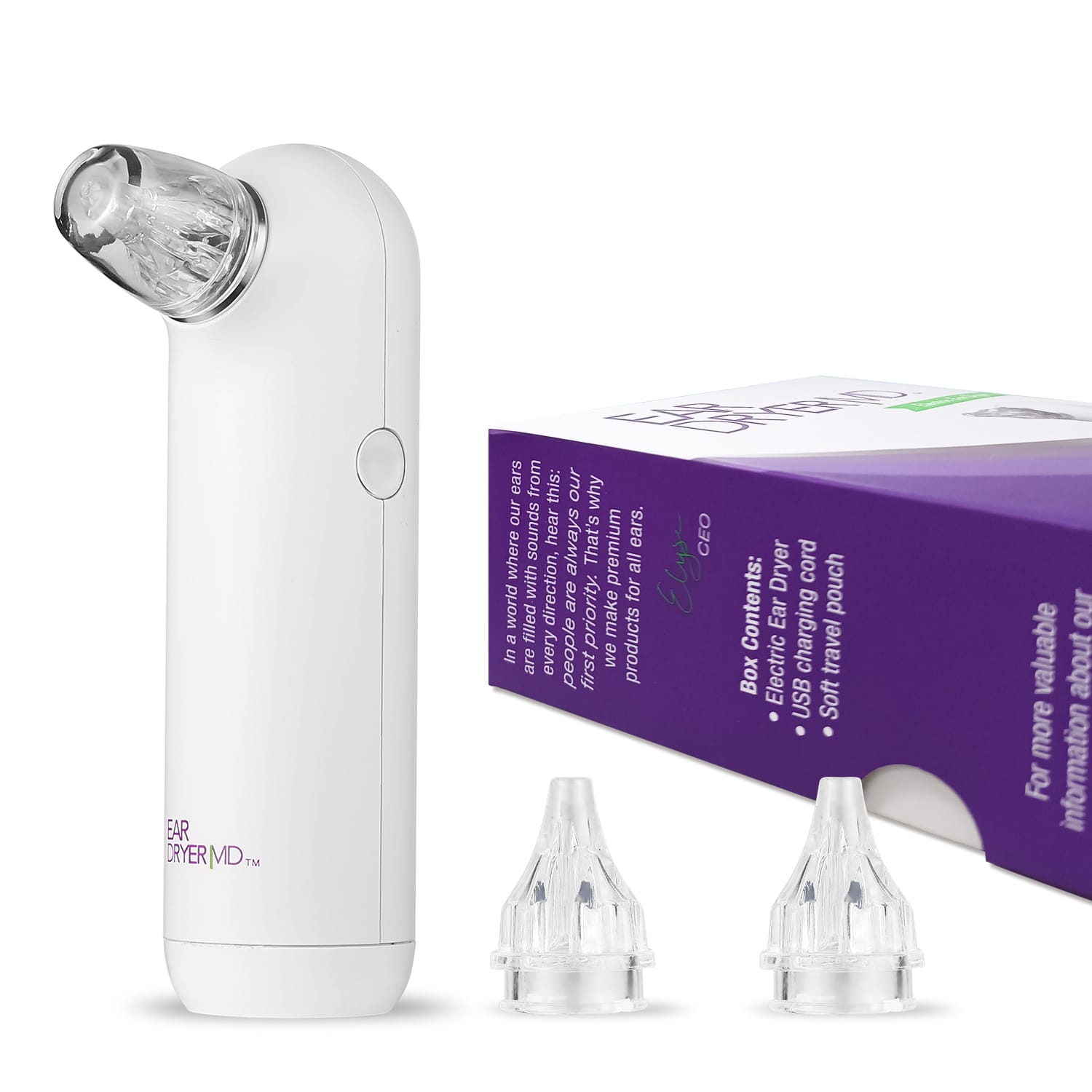“We are always looking to innovate in the ear care space. Our newest addition to the suite of Eoseraproducts is the Ear Dryer MD. It’s a sleek, effective device that dries water quickly from the ear canal. We’re thrilled to be launching it in major retailers and know it will help those with water-clogged ears,” says Elyse Dickerson, CEO.