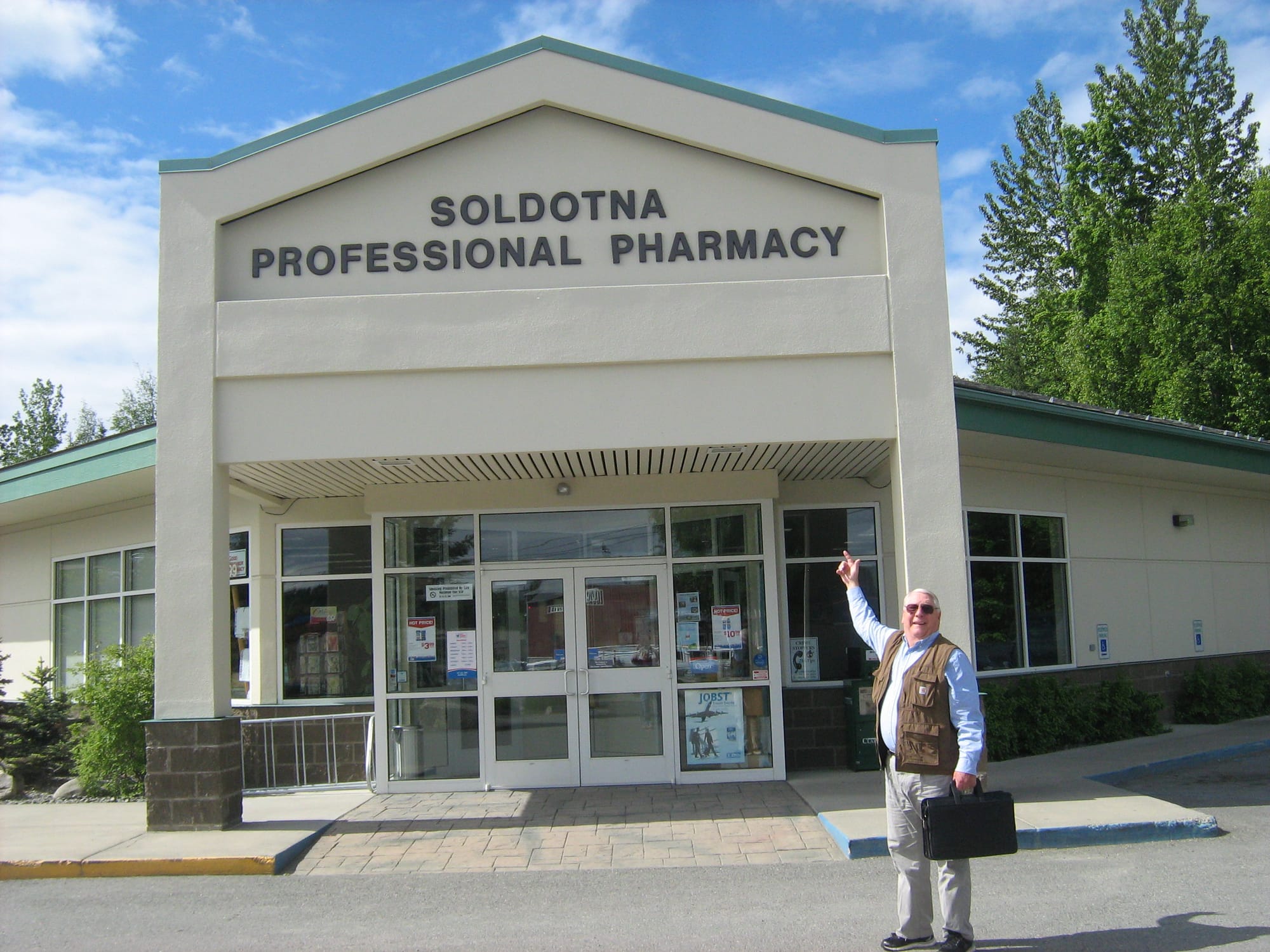 Kneeland standing outside Soldotna Pharmacy in Soldotna, Alaska in 2017.