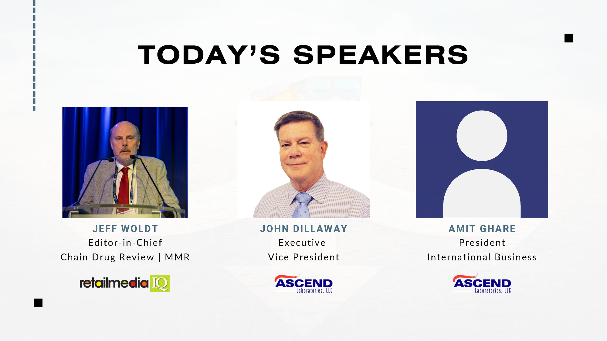 Panelists included John Dillaway, Executive Vice President of Ascend Laboratories, and Amit Ghare of Ascend Laboratories, with Jeff Woldt, Editor-in-Chief of retailmediaIQ, serving as moderator. The session also explored what sets Ascend apart in a competitive generics landscape.