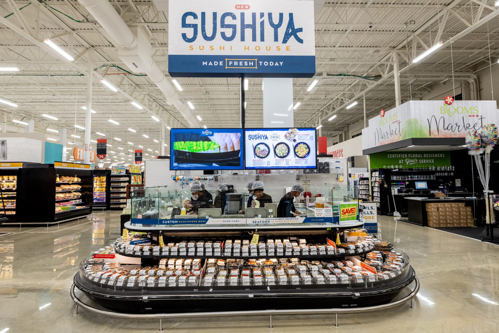 The new location features a Sushiya department, offering fresh, made-in-store sushi and Asian grill selections, including fried rice and noodle bowls. In addition, H-E-B Meal Simple offers fresh, convenient chef-inspired meals prepared in-store.
