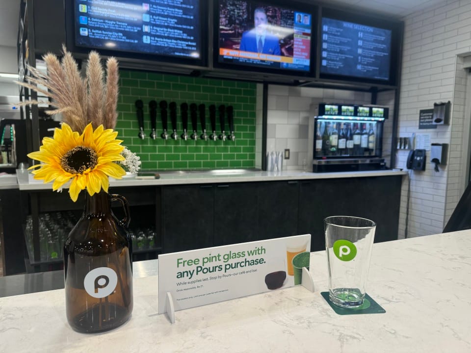 A Wellington, Fla., location is home to Publix Pours, which features a full bar serving beer, wine, coffee, smoothies and açaí bowls. It has become a viral sensation for its “sip-and-shop” environment.