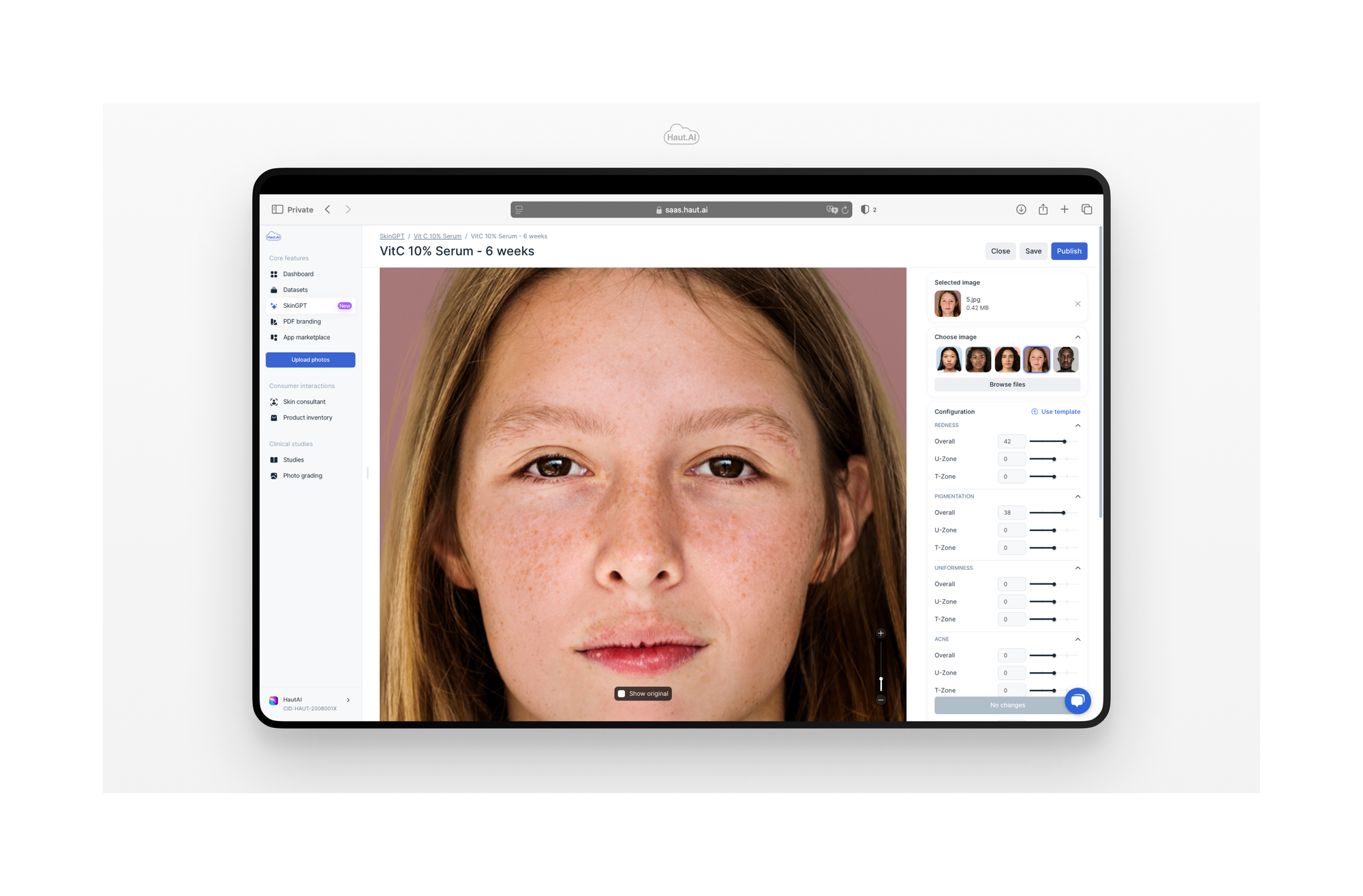 In tandem with its B2B launch, Haut.AI is introducing a new consumer-facing platform: "Generative.Skin: Library of Ingredient Effects." This interactive website allows individuals to upload photos and explore the visible effects of popular skincare ingredients—including retinol, hyaluronic acid, and vitamin C—on their skin. The platform provides high-fidelity visualizations addressing common concerns such as pigmentation, redness, breakouts, and aging.