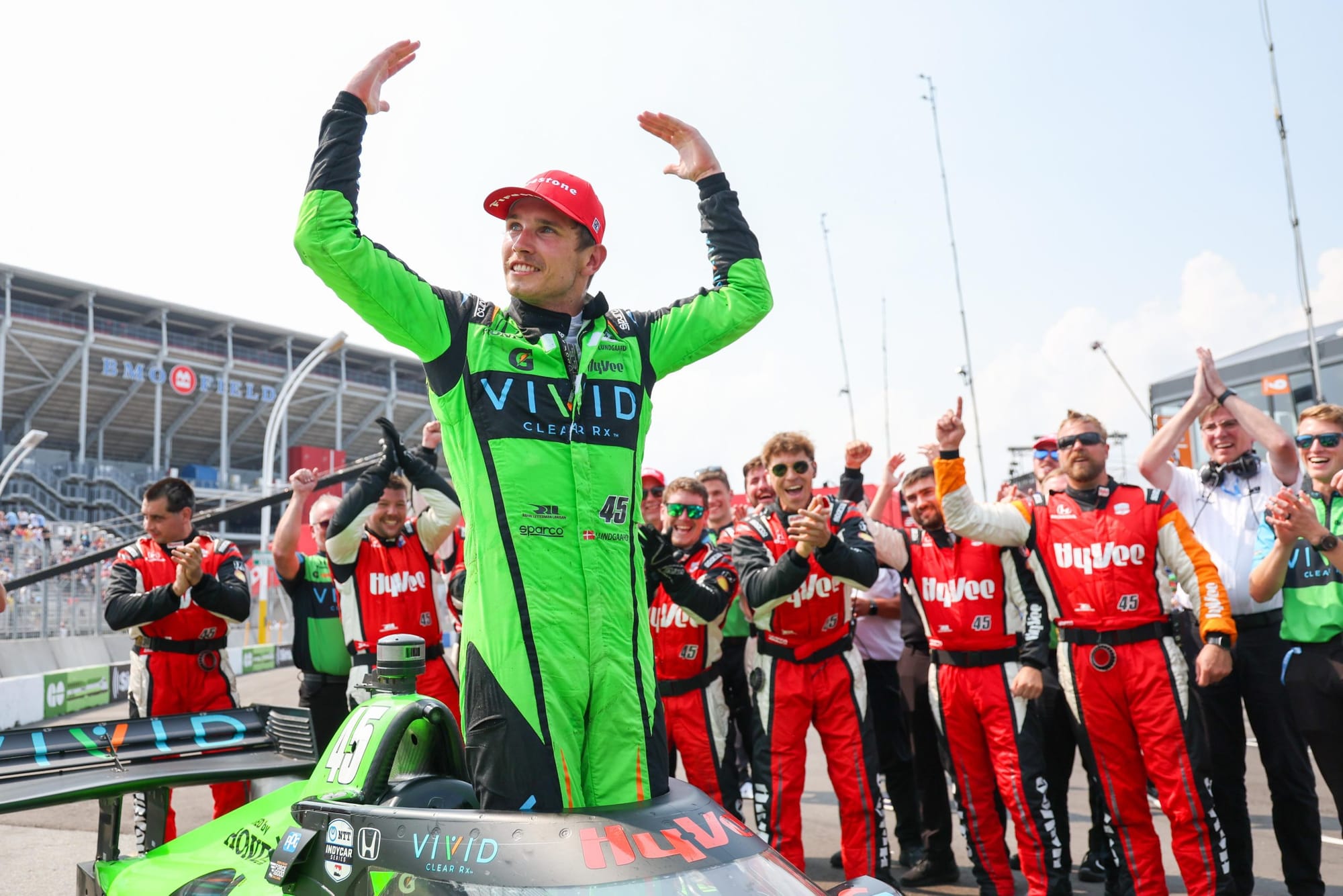 WEST DES MOINES, Iowa — Hy-Vee, Inc. congratulates Rahal Letterman Lanigan Racing and its driver Christian Lundgaard for winning the Honda Indy Toronto on Sunday, July 16. Lundgaard won driving Hy-Vee’s No. 45 Vivid Clear Rx Honda.