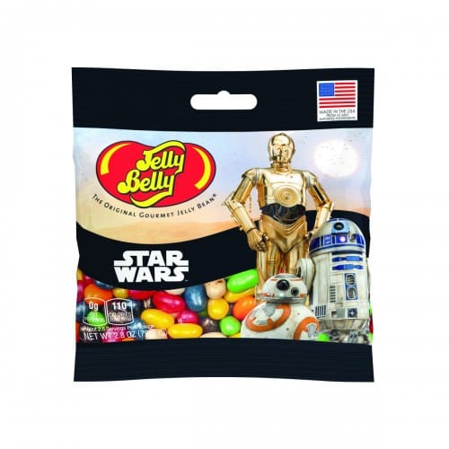 Two 2.8-oz. Grab & Go bags in this line celebrate the iconic droids. BB-8 already has a popular Grab & Go bag, and now a C-3PO and R2-D2 bag will join the collection. Each bag features a flavor lineup of Jelly Belly jelly beans inspired by the droid’s color scheme. Additionally four different designs including character art of Kylo Ren, Chewbacca, BB-8 and R2-D2, are now featured on 1-oz. bags.