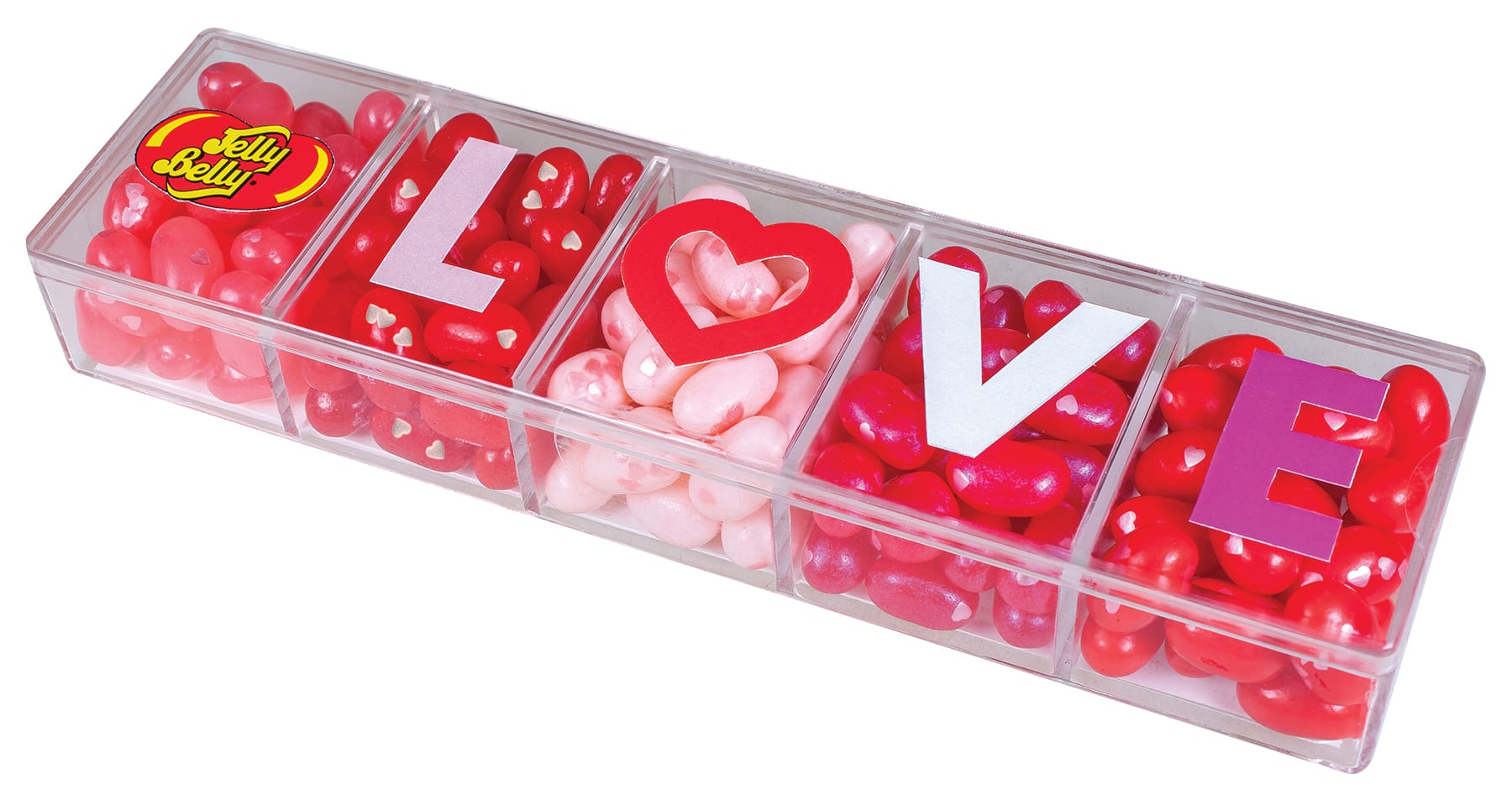 The special 4-oz. Jelly Belly Love Beans 5-Flavor clear gift box will be available for Valentine’s Day. It will feature J five flavors: jewel very cherry, red apple, coconut, cotton candy and cinnamon.