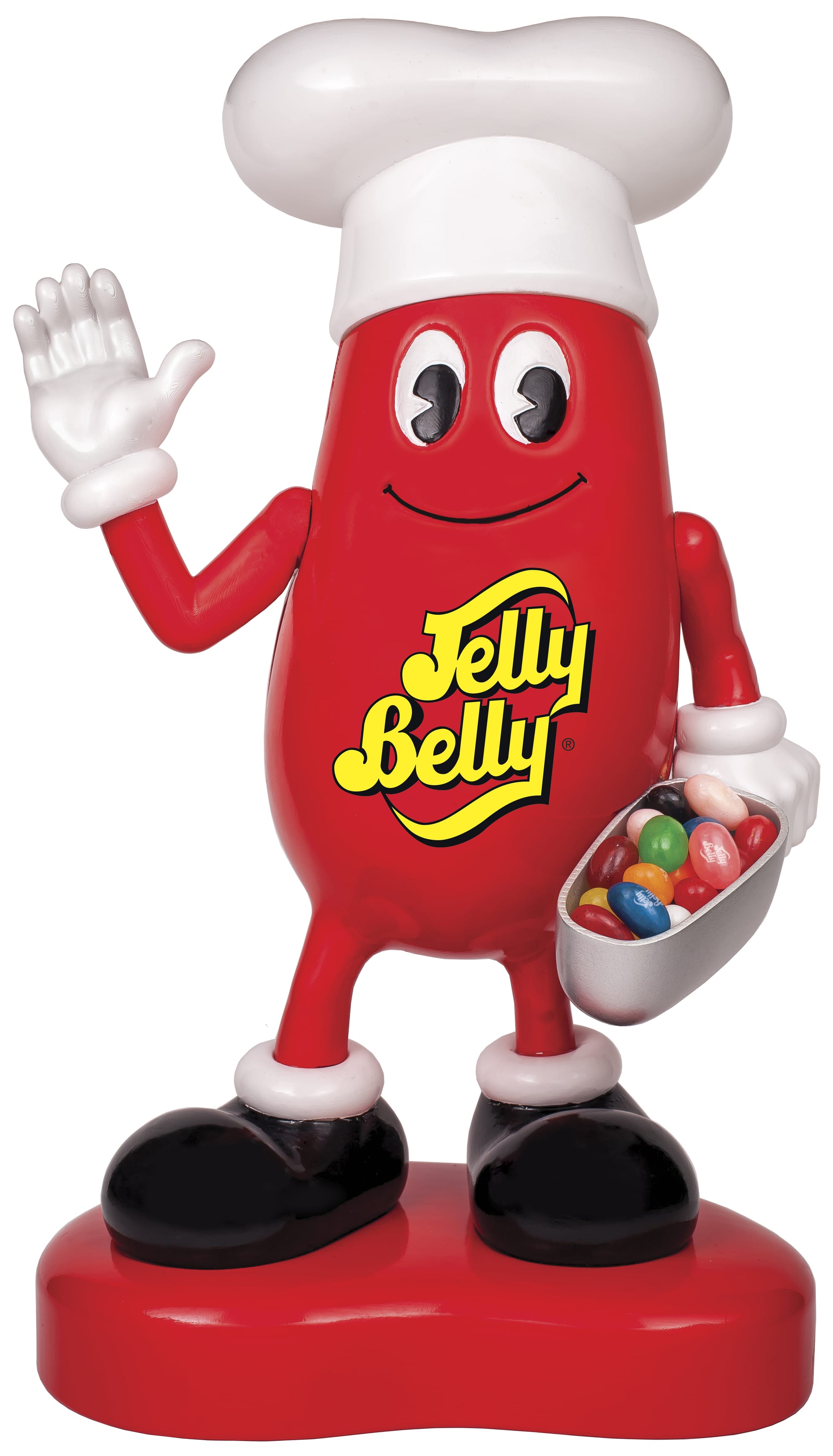 • The Mr. Jelly Belly Standing Bean Machine Dispenser serves up a scoop of Jelly Belly beans by pulling down on Mr. Jelly Belly’s waving arm. The dispenser holds up to 5.7 ounces of Jelly Belly jelly beans.