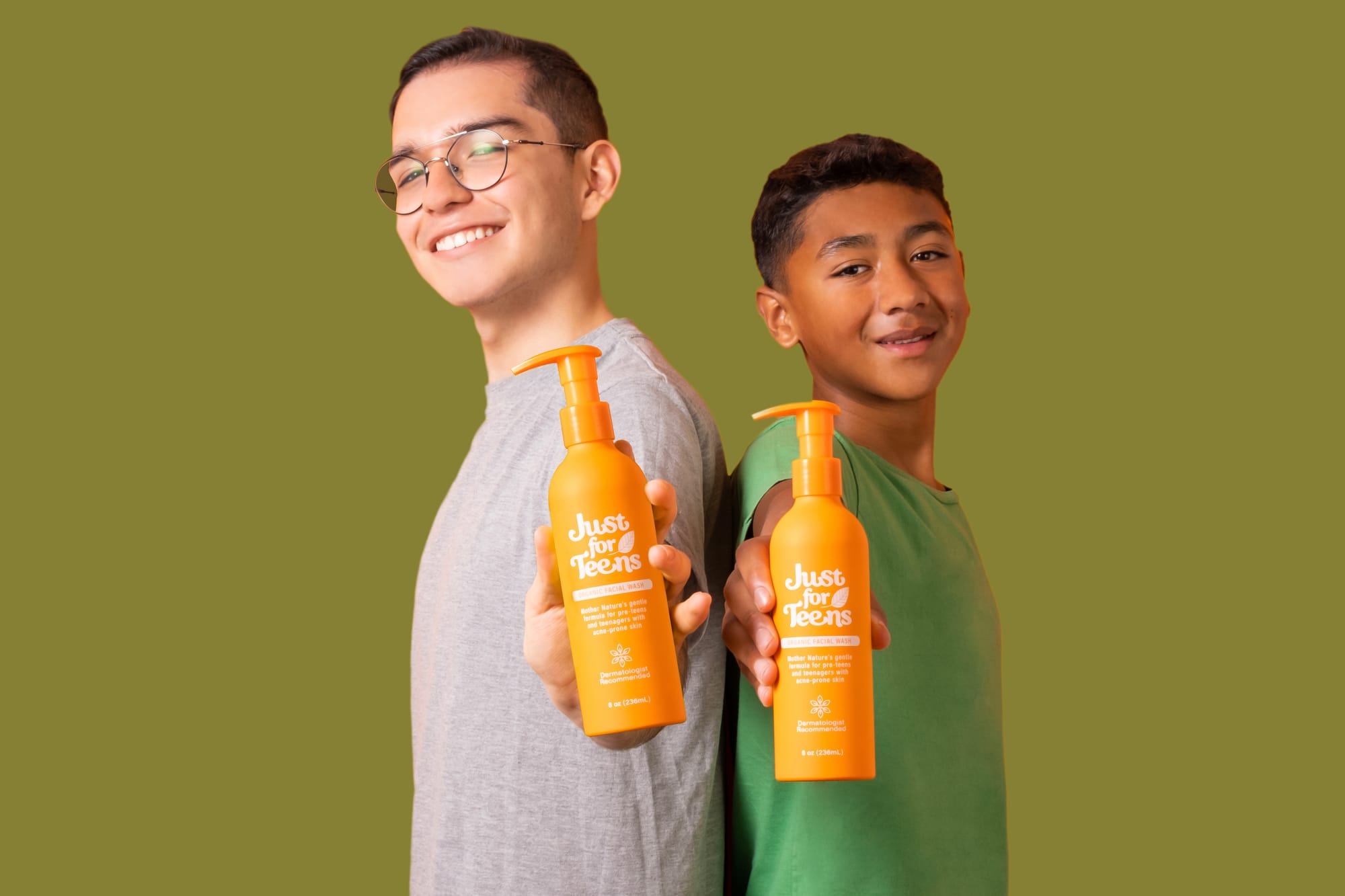 The Just for Teens Facial Wash and Moisturizer are carefully formulated for preteens and teens with sensitive, oily, and acne-prone skin. These products incorporate tea tree oil and avoid harsh ingredients like hyaluronic and salicylic acids, which can be too aggressive for young skin. As a result, they promote healthy, balanced skin without the irritation often caused by stronger, adult-targeted formulas. Just for Teens is perfect for those looking to establish effective skincare and self-care routines.