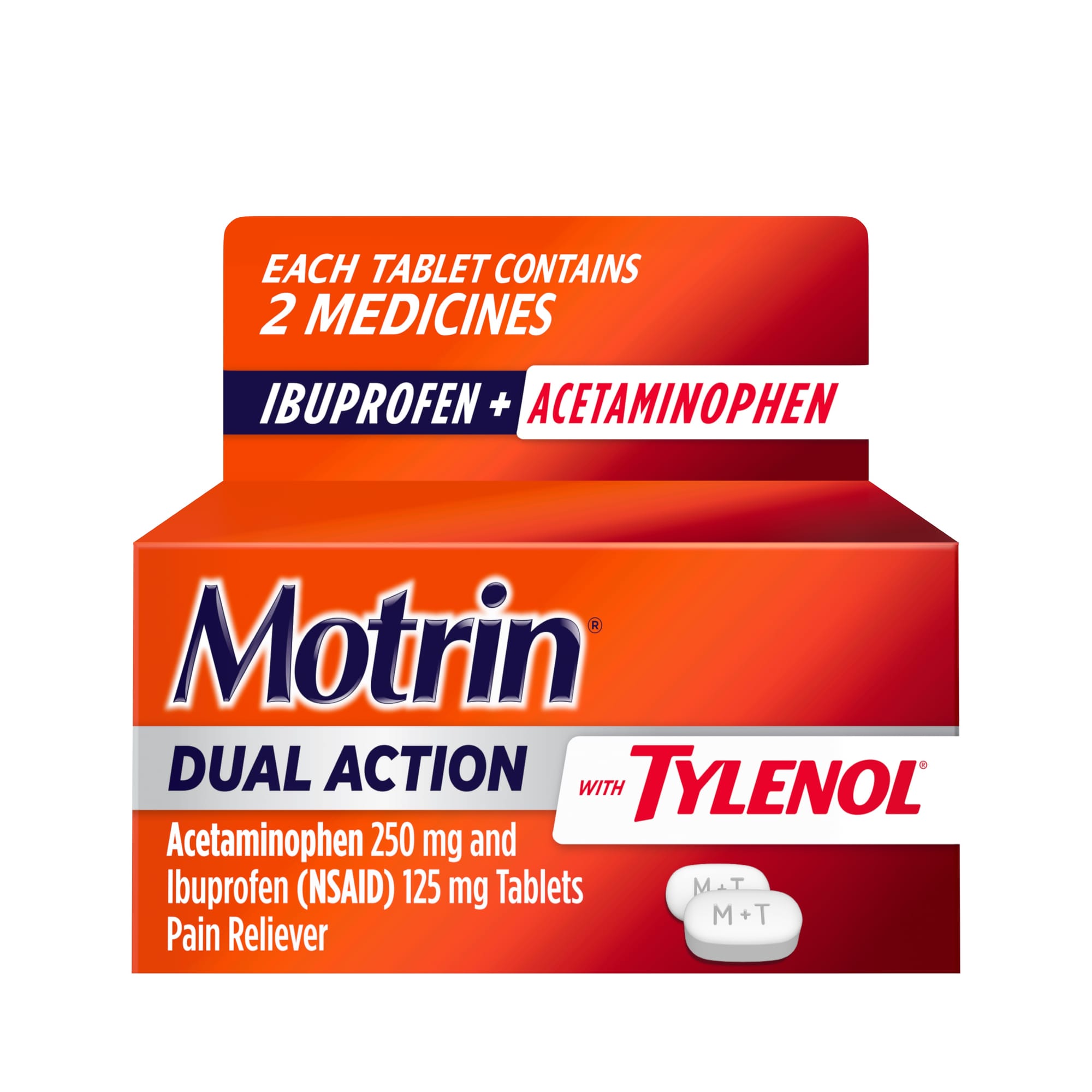 - By combining the strength and speed of two powerful pain relievers in one pill, Motrin Dual Action with Tylenol can provide a convenient alternative option for consumers.
