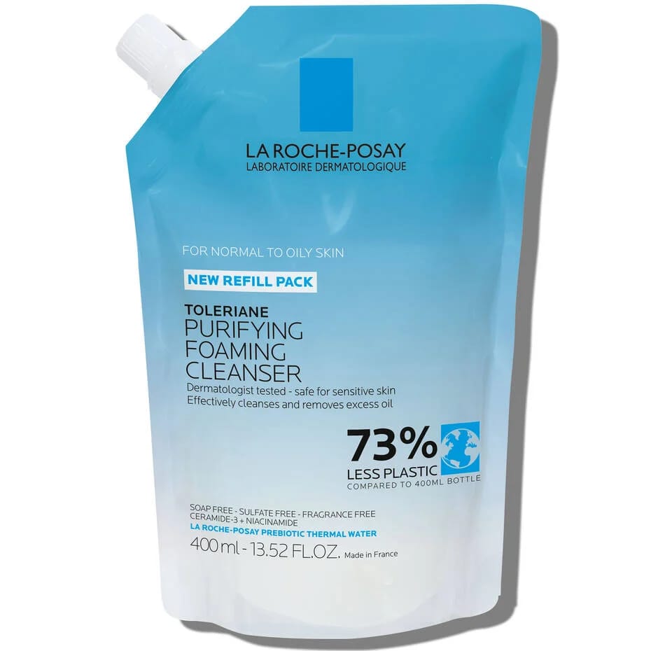 Refill Format of La Roche-Posay Toleriane Purifying Foaming Cleanser ($14.99 // la roche-posay.us, drugstores nationwide): Toleriane Purifying Foaming Facial Cleanser is a daily face wash for normal to oily, sensitive skin. Formulated with La Roche-Posay prebiotic thermal spring water, niacinamide, and ceramide-3, this face wash gently cleanses skin of dirt, makeup, and impurities while maintaining the skin’s natural moisture barrier and pH. Its gentle foaming formula leaves skin feeling clean, fresh, and comfortable with no pore-clogging residue.