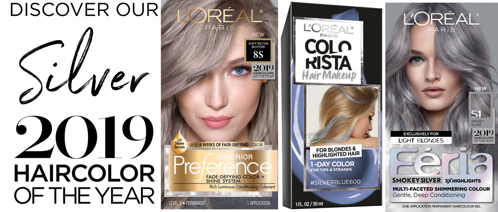 L’Oréal Paris is debuting a versatile assortment of silver shades ranging from Silver Blonde to Smokey Silver to Silver Blue. These new silver shades come from their top collections – Superior Preference, Feria, and Colorista Makeup, allowing people to easily achieve 2019’s most coveted color at-home.