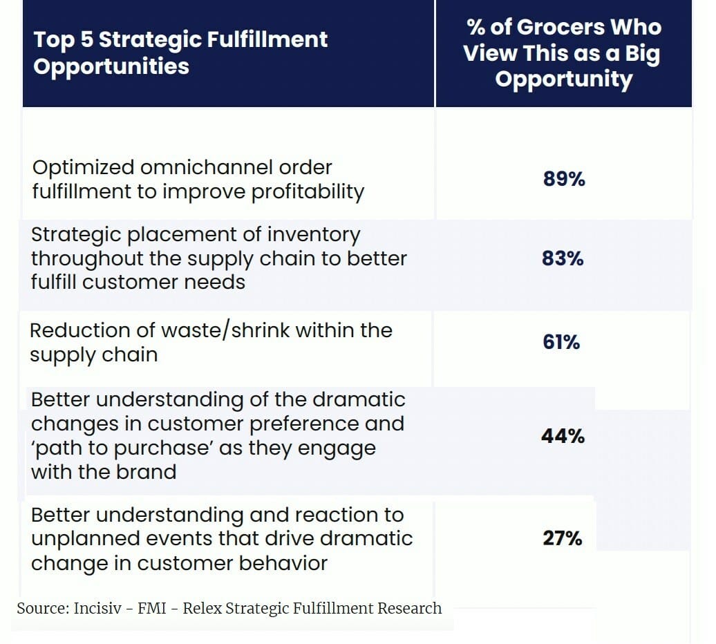 JACKSONVILLE, Fla. — Recent research by Incisiv, conducted in collaboration with The Food Industry Association (FMI) and in partnership with RELEX, highlights the importance of strategic fulfillment in achieving digital profitability.