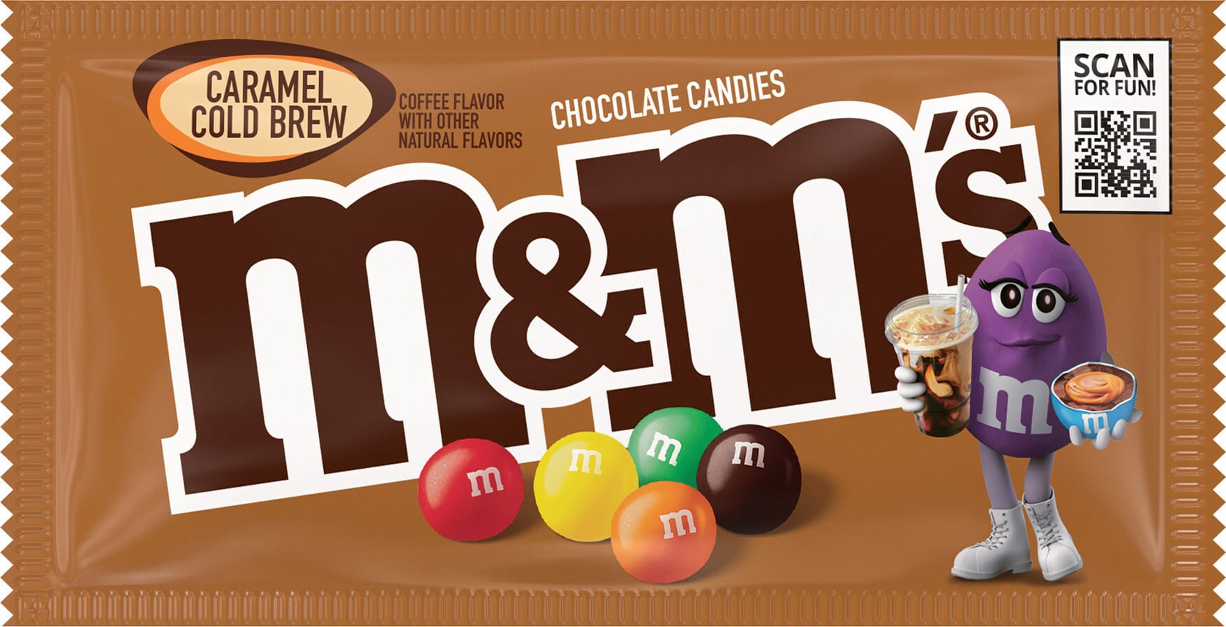 Inspired by one of today’s most popular coffee shop menu items, M&M’S Caramel Cold Brew is a delicious combination of smooth, robust coffee flavor and sweet, chewy caramel, covered in classic M&M’S milk chocolate and wrapped in a colorful, candy shell.