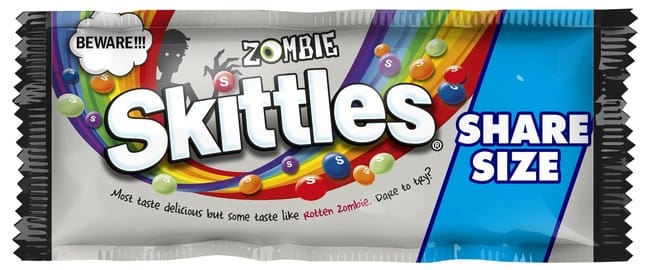 Zombie Skittles will be available in major retailers across the U.S. in Share Size (RRP $1.89), Lay Down Bag (RRP $2.49) and Fun Size Bag (RRP $2.99).