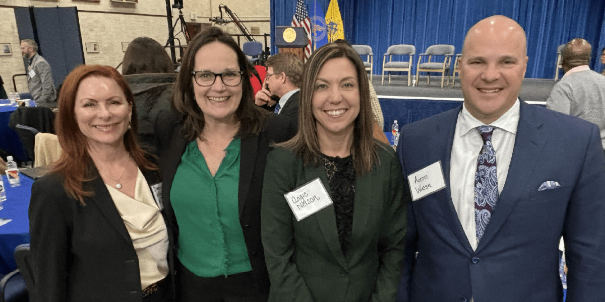 NACDS members including Albertsons, Hy-Vee, Inc., Kroger Health, Meijer, and Walmart attended the Food Is Medicine Summit on Jan. 31. Pictured here (left to right): Denise Algire, director of health for Albertsons; Stacey Johnson, senior vice president, government relations and corporate compliance for Hy-Vee, Inc.; Angie Nelson, senior vice president, pharmacy for Hy-Vee, Inc.; Aaron Wiese, president, Hy-Vee, Inc.
