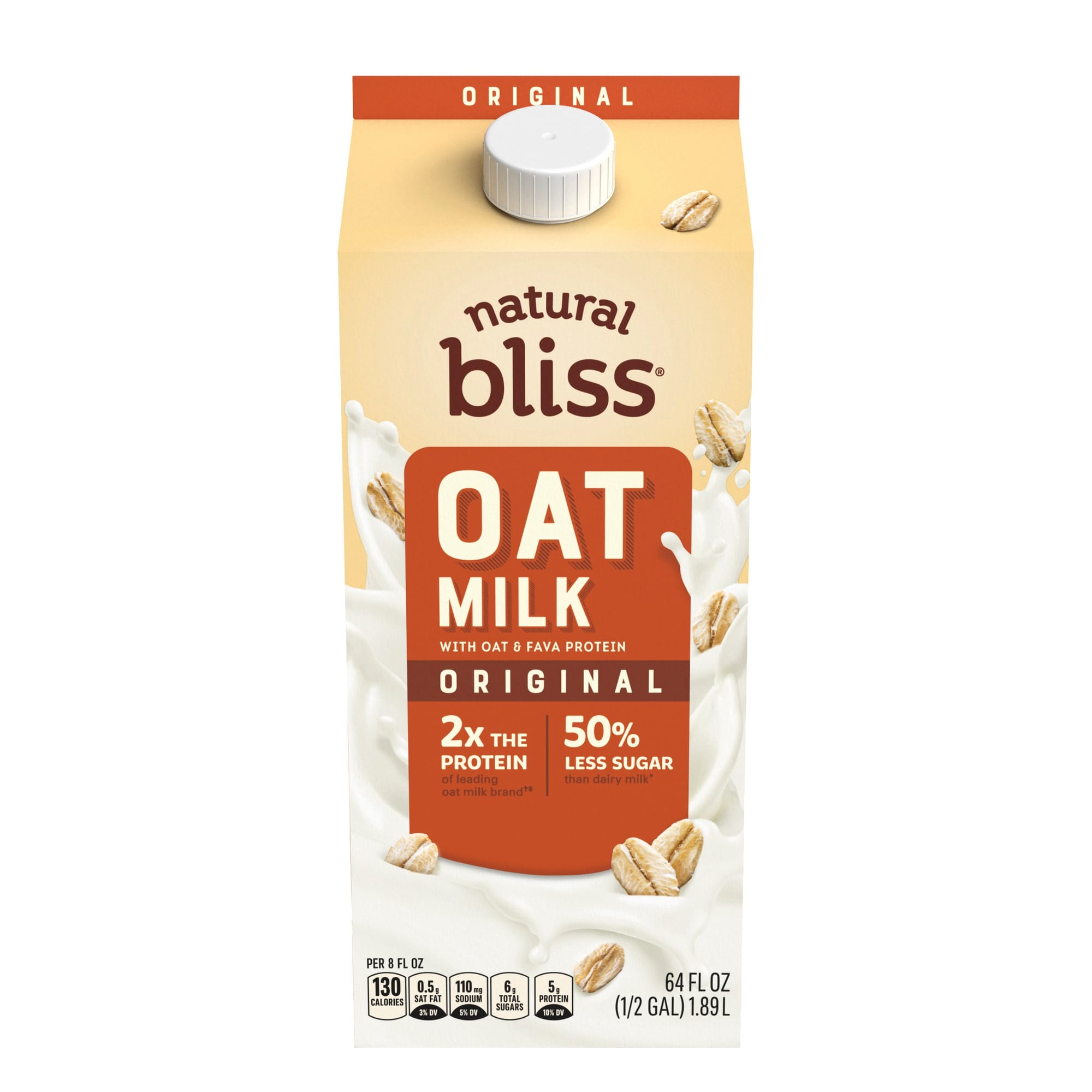 - NEW natural bliss Oat Milk: natural bliss is expanding beyond the creamer aisle with the introduction of its first-ever plant-based milk beverage: natural bliss Oat Milk, available in 64 oz. Original and Unsweetened varieties. It’s made from a unique blend of oats and fava bean protein, with 5g of protein per serving1 and less sugar than dairy milk.2 It will be available for onsite sampling, ahead of its national grocery launch in May 2023.