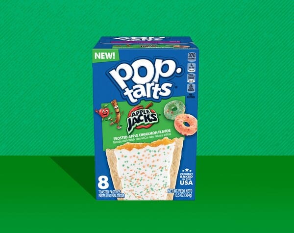 Complete with green and orange-sprinkled frosting, Apple Jacks Pop-Tarts perfectly balance the warm cinnamon aroma and sweet apple flavor of the classic cereal to reinforce the “apple-cinnalicious” experience that has brought joy to breakfast-lovers for generations.