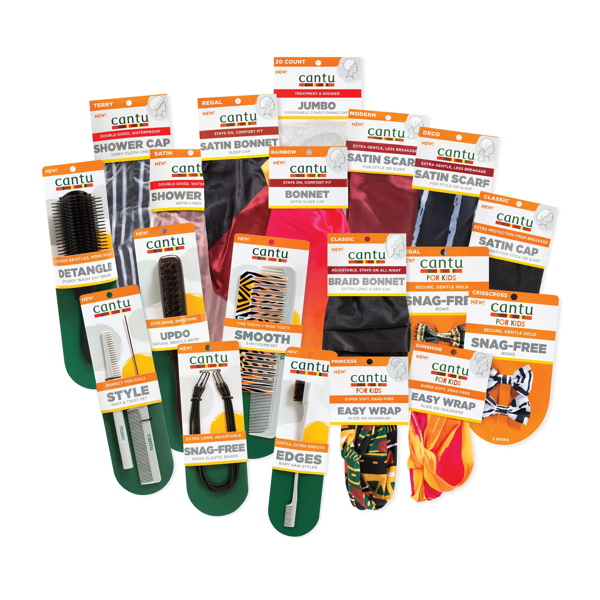 Cantu Beauty introduced accessories in 2018 with products such as Detangling and Paddle Brushes, Turban Wraps and Accent Charms for consumers to accent their braids and locs. The newest phase of accessories builds on those items with additional featured items designed specifically for the needs of textured hair including the Braid Bonnet and Snag-Free Elastic Bands. There will also be accessories specifically for young girls including elastic bows.