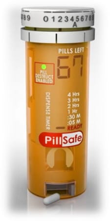 An electronic net inside each PillSafe container can detect any breach attempt. PillSafe can be programmed to destroy the medication or notify the physician or the pharmacy to confirm compliance. The PillSafe container is single-use and disposable.