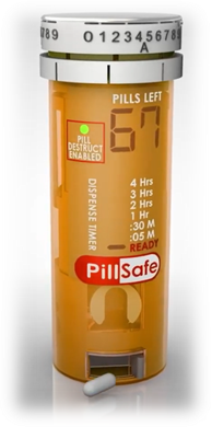 PillSafe's proprietary smart pill bottle with WiFi uses advanced technology designed specifically to combat medication errors and misuse in the home. Each PillSafe bottle features a serialized dispenser requiring patient-specific access codes, an electronic pill counter, and a time-release system that ensures medication is only dispensed according to prescribed schedules. Moreover, the PillSafe® system immediately detects and alerts caregivers and medical providers if tampering occurs.