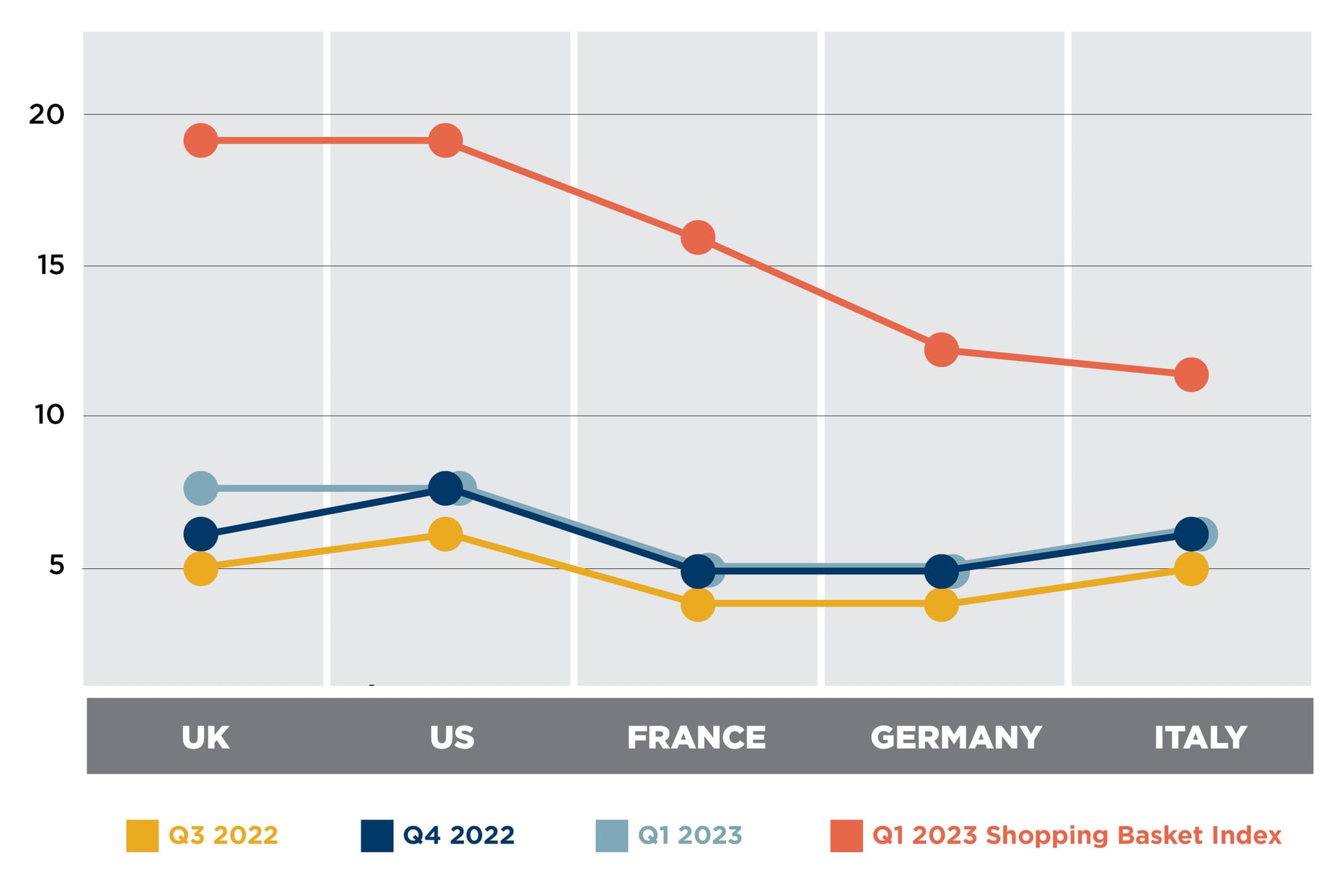 | COUNTRY | Q3 2022 | Q4 2022 | Q1 2023 | Q1 2023 Shopping Basket Index |