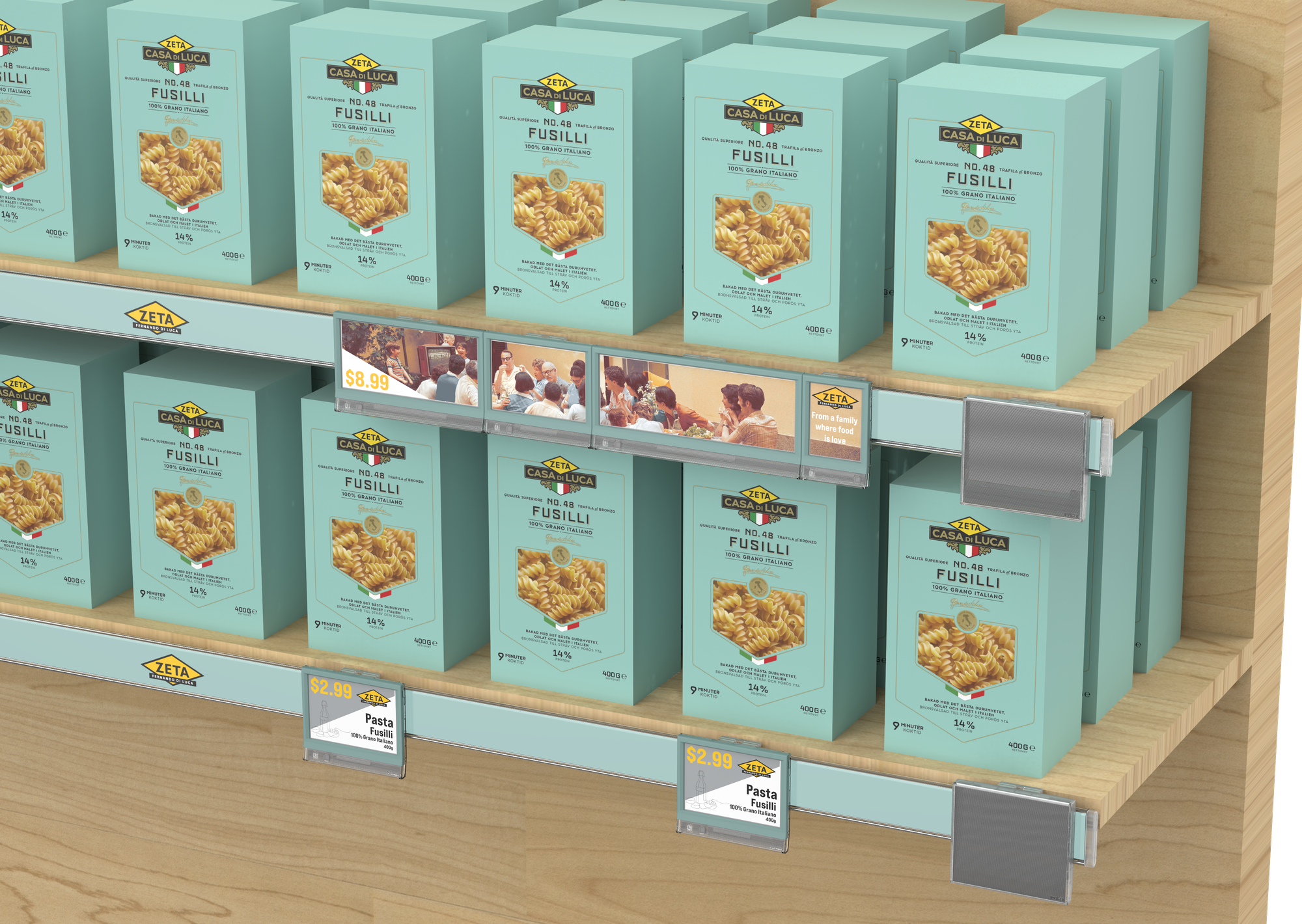 Pricer Avenue™ elevates the aisle with its thin, sleek Scandinavian design and purpose-built powered rail system that creates a clean, branded look. Its large-format Floating Canvas displays, formed by linking multiple ESLs, deliver richer storytelling and clearer product information – helping shoppers make more confident decisions while reducing friction at the shelf.