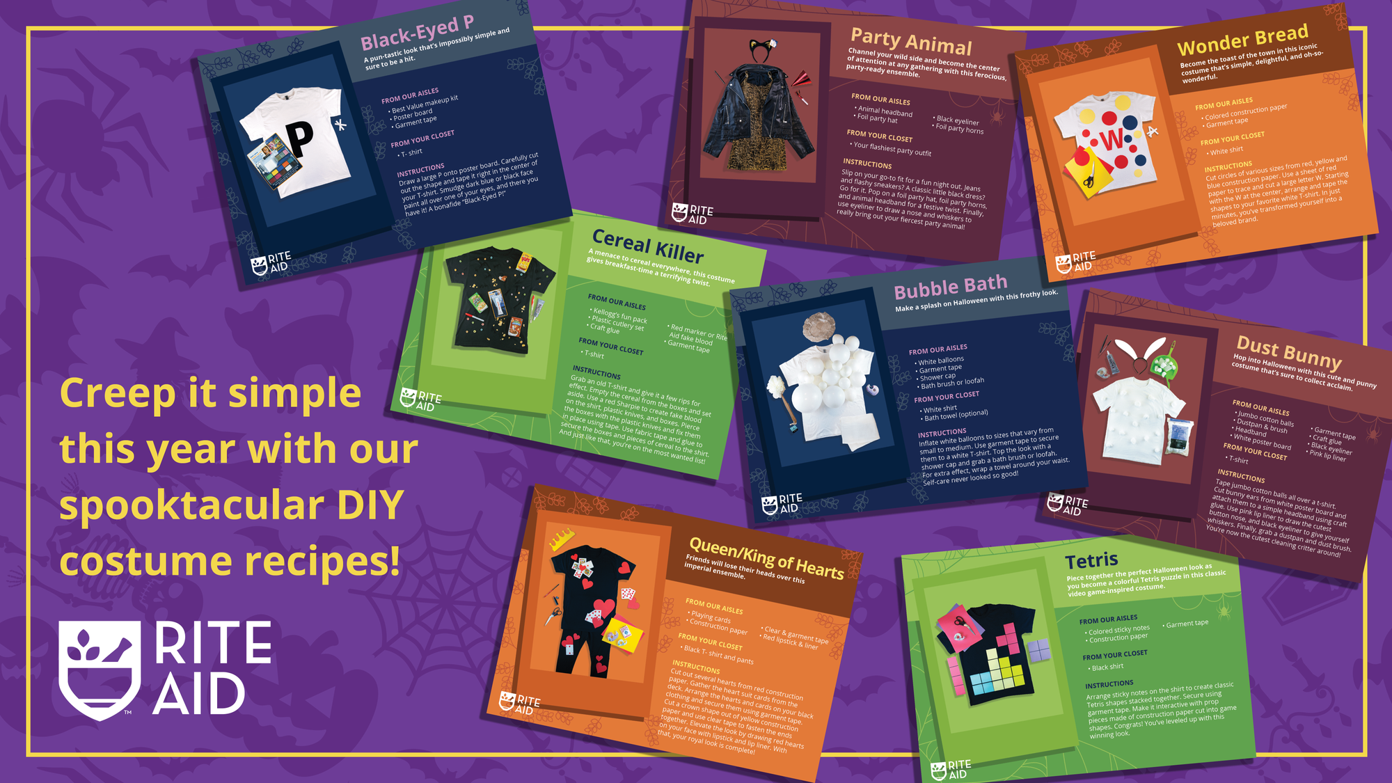 Offering eight uniquely clever ideas, Rite Aid’s virtual Costume Recipe Cards provide spooktacular guides on how to DIY festive fits using items from the aisles of Rite Aid paired with closet staples, including: