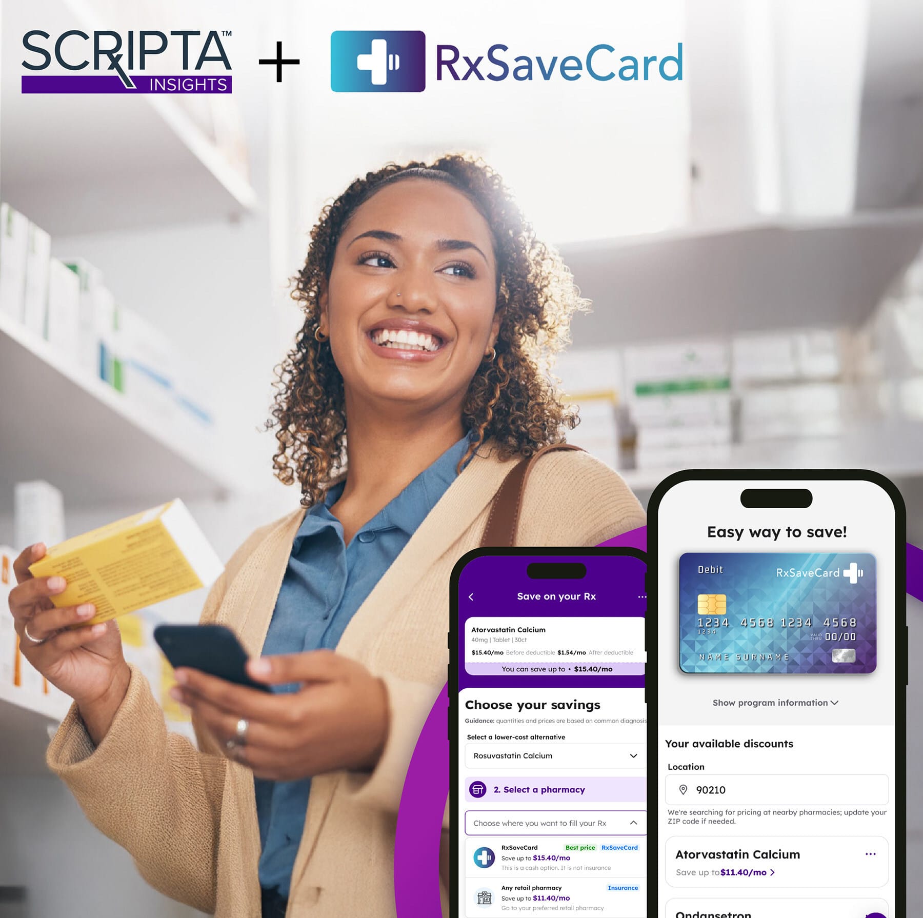 Members will be able to search RxSaveCard discounted prices and pharmacy options, and even access their card directly in the Scripta member app. Scripta will provide clients with detailed reporting on realized savings.