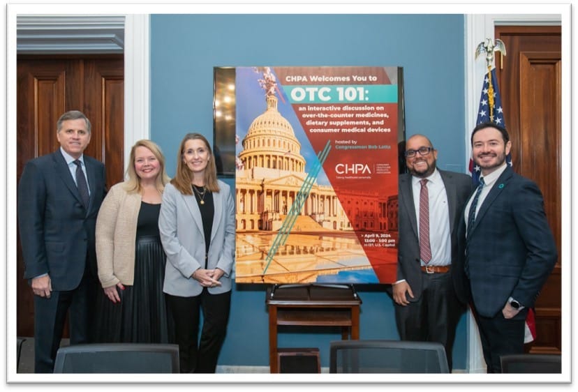 WASHINGTON – Representatives from the Consumer Healthcare Products Association (CHPA), Sanofi Consumer Healthcare, Haleon, Kenvue, and Bayer participated in a discussion this week hosted by U.S. Rep. Bob Latta (OH-05) to provide an analysis of the over-the-counter (OTC) Monograph Drug User Fee Program (OMUFA), how some OTCs come to market through the Rx-to-OTC-switch process, how these products are regulated by the U.S. Food and Drug Administration (FDA), and industry’s efforts to expand HSA/FSA coverage for dietary supplements and oral care products.