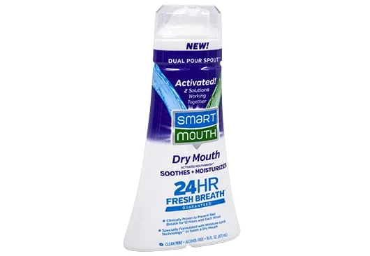 Like the new Dry Mouth Formula, SmartMouth’s Original Activated and Clinical (Gum & Plaque) rinses are free of alcohol and other drying agents often found in typical mouthwashes. SmartMouth products are sold at Walmart, Walgreens, Target, CVS and most drug stores and supermarkets.