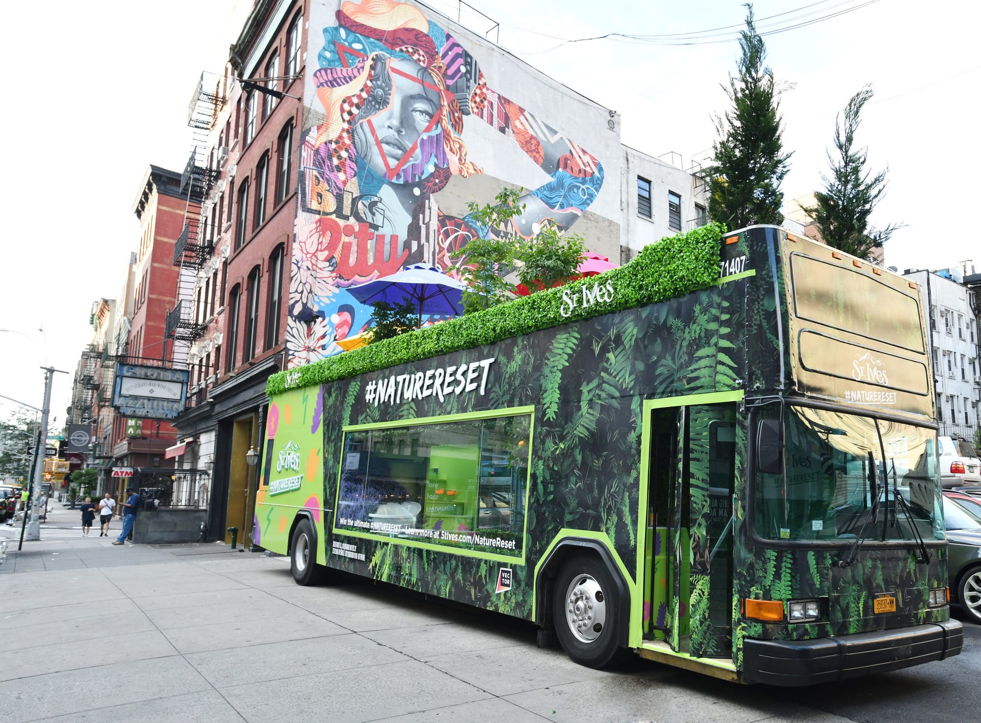 As a way to bring nature to people and help combat the fact that Americans, on average, spend approximately 90% of their time indoors, St. Ives is bringing the #NatureReset bus across the country this summer, an experiential and immersive mobile experience offering a nature oasis for people who need it most. Traveling to New York, Chicago, Columbus, OH and Philadelphia, PA, starting Thursday, July 25th, the bus will feature nature scapes taking inspiration from newly launched St. Ives Face Mists’ ingredients, as well as the opportunity get a boost of happy by spending just 15 minutes with nature on the double decker bus.