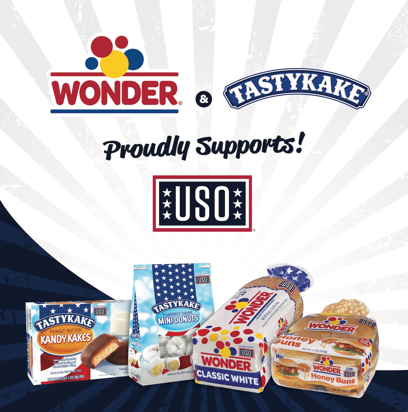 The “Deploy the Joy” campaign will feature prominent in-store grocery displays with limited edition, co-branded packaging on select Tastykake and Wonder products. Visit www.tastykake.com/uso or www.WonderBread.com/usofor more information.