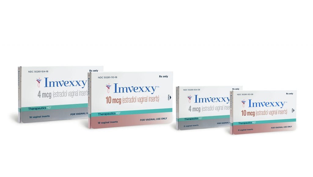 “Imvexxy is a bio-identical vaginal estrogen product that offers a fraction of the estrogen contained in the average doses of many existing products currently on the market,” said Brian Bernick, chief clinical officer of TherapeuticsMD. “Imvexxy is the only product specifically designed to be applicator-free. It dissolves completely without mess or additional clean-up, and can be used anytime of day. It allows women the freedom to immediately return to their normal daily activities. Studies showed that, in patients who used Imvexxy, systemic absorption of estradiol remained within postmenopausal range.”