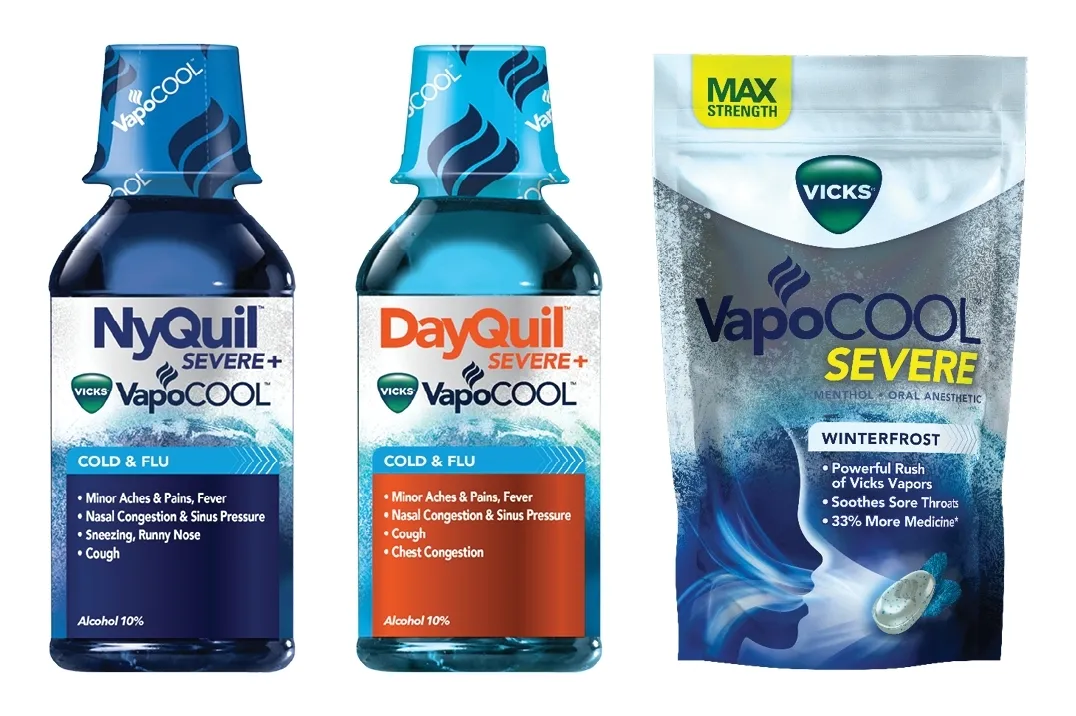 Vicks DayQuil and NyQuil Severe with VapoCOOL and VapoCOOL Severe Medicated Drops are sold at retailers nationwide and online. For more information on both products and other VapoCOOL offerings, please visit https://vicks.com.