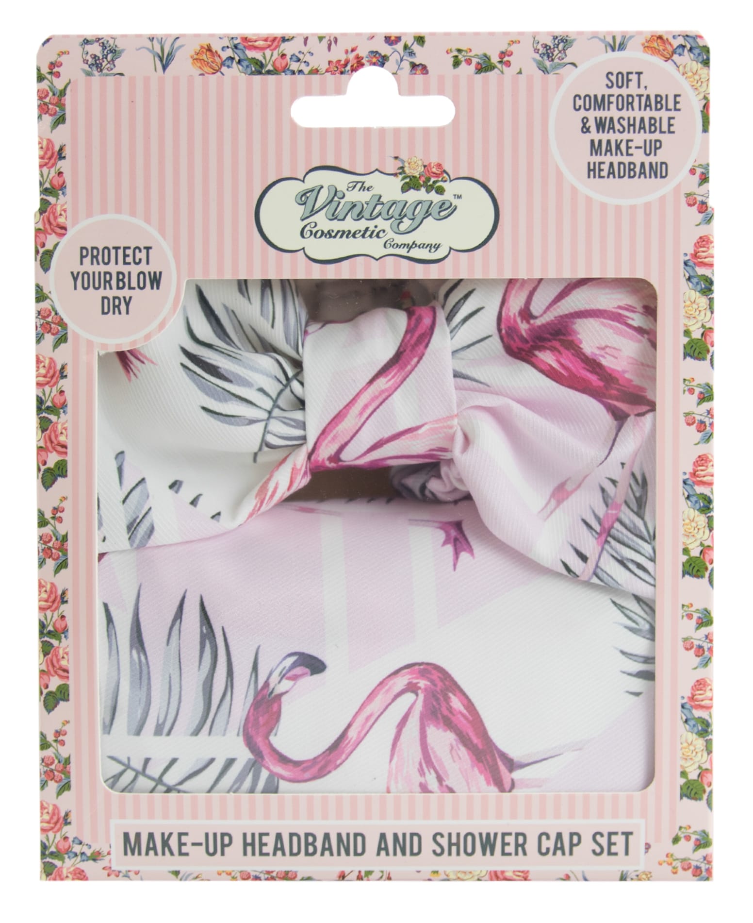 NEW YORK — Vintage Cosmetic Company will be introducing three new products into Ulta Beauty stores in February: Headband and Shower Cap Set in flamingo print, Cooling Gel Eye Pads with fluttery eyelash print, and Peggy Make-up Headband in leopard print.