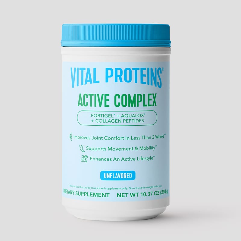 Made from a unique blend of FORTIGEL collagen peptides, AquaLOX boswellia serrata extract and the brand’s best-selling collagen peptides, Vital Proteins Active Complex features high-quality ingredients proven to support joint mobility, improve joint comfort and reduce muscle soreness in less than 2 weeks. A daily serving of Vital Proteins Active Complex can be taken all at once or divided throughout the day (three tablespoons). And because it’s unflavored, the powder is an easy addition to existing routines – just mix into coffee, tea, smoothies or other favorites to keep on keeping on.