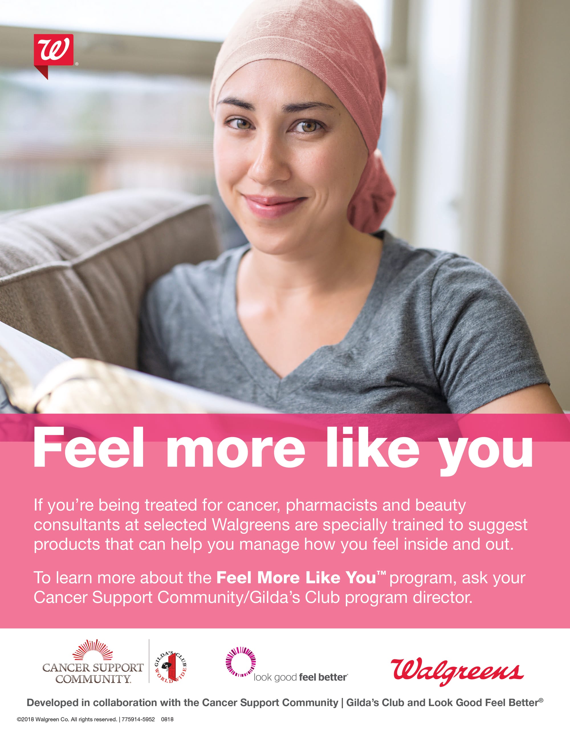 The signature component of Feel More Like You is an integrated approach to cancer care, with specially trained Walgreens beauty consultants and pharmacists working to provide personalized expertise and support to people living with cancer. Additionally, Walgreens community-based specialty pharmacies will play a pivotal part in helping to provide support to coordinate care between individuals with cancer and their local Walgreens store.