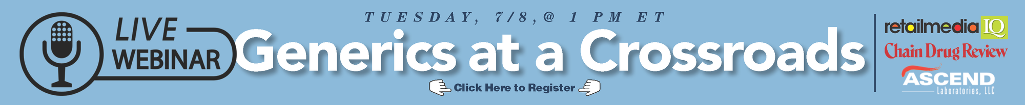 NEW YORK — Chain Drug Review readers are invited to a timely and thought-provoking webinar exploring the critical role of generic drugs in the U.S. healthcare system. Titled “Generics at a Crossroad,” the 30-minute webcast will take place on Tuesday, July 8, 2025, at 1:00 p.m. EDT and will feature prominent voices from Ascend Laboratories.