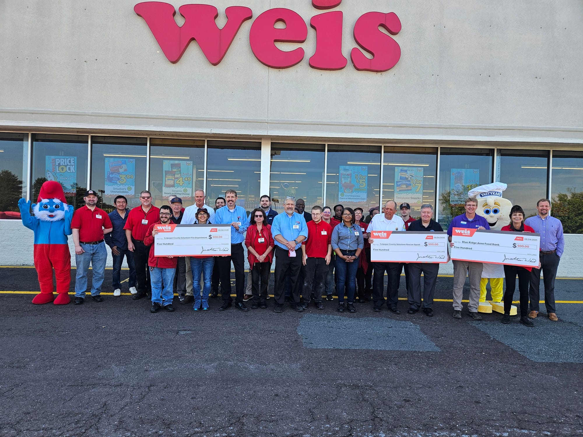 In celebration of each reopening, Weis Markets presented donations to Culpeper Fire Department, Culpeper Rescue Squad and Blue Ridge Area Food Bank.